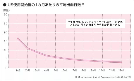 ミレーナ挿入後の数ヵ月間、生理以外の出血がみられることがありますが、時間の経過とともに減少します。